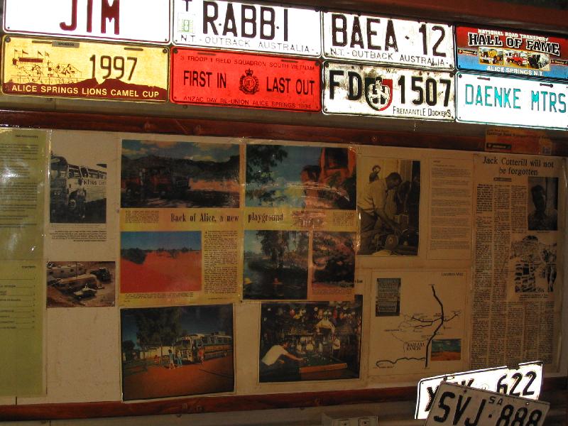 Newspaper articles in bar of the Jim, son of Jack Cotterill (Jack was one of the founding fathers of tourism to the Centre of Australia)